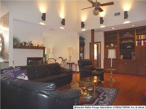 Grand entrance with double leaded glass entry doors, high ceilings, split floor plan, wood floors, double sided fire place, over size double carport, storage galore, huge inside spa that seats six, double shower in spa room, wet bar, new roof and fresh paint. Landscaping with irrigation system, seasonal porch, large covered patio, huge fenced backyard and security system for your safety.