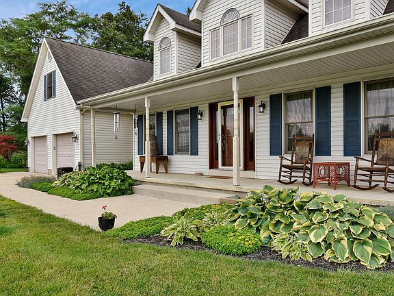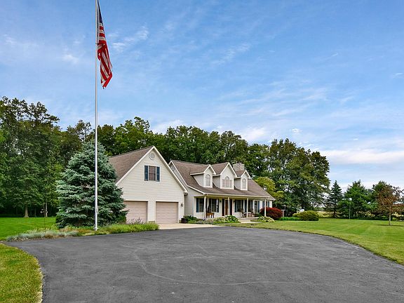 Beautiful estate home. This cape cod home has over 2800 sqft w/ add unfinished space in the lower level! 1st flr large Master suite with stone fireplace, soak tub & separate shower, 2 large brs & hall bath on 2nd level, large additional finished room over garage, large kitchen, eat in area, loads of cabinets and counter space, hardwood floors, 4 season room & Large open family room with stone fireplace. Enjoy nature and quietness from the large back deck, pool, fire pit, shed and private woods. Large covered front porch, 6 acres of leased farmland could be use for mini horse farm, Christmas tree farm. Additional 26'x30' multi use outbuilding. 20KW whole home generator, 2 water heaters. Over 19 sprawling private acres. Located 15 minutes away from Grove City, 20 mins from Columbus