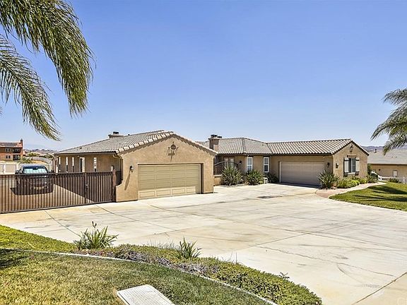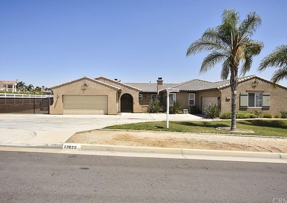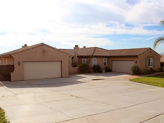 PRICE REDUCED! Come see this GORGEOUS single story horse property located in the Bridal Creek Community with 1 acre flat lot. This home features 4-Fireplaces,one in family room, one in formal living room, one in den/office, and one in front Courtyard with access to two 2-car large garages. Driveway is big enough for several cars/toys and/or RV. Entryway leads to a large formal living room with a fireplace & formal dining room combo with french doors leading to the full length enormous covered patio. Make your way into a beautiful & large kitchen which includes a large island, granite counter tops, plenty of cabinets and a large pantry. Kitchen opens into a very spacious family room with yet another set of french doors leading to the patio. Spectacular views from all around the home. Carpet and nice tile flooring throughout. Other great features include but not limited to:Inside Laundry room w/Deep sink and Cabinets,TV wall mounts,TV in office(Hardwired to security cameras)Windows and doors wired for alarm,Outdoor security cameras with DVR, stainless steel refrigerator, Security film on windows/doors, plantation shutters throughout the whole house,10x12 Tuff Shed, rain gutters including patio cover,Cabinets and shelving in garage and ceiling fans in all rooms. MAKE THIS YOUR DREAM HOME! MUST SEE!