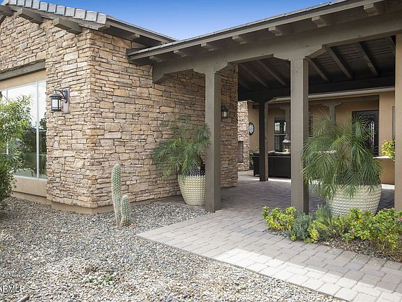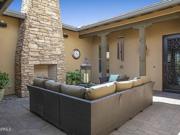 Amazing Trilogy home located right on the third green of the golf course. Beautiful golf course views through both the wall of windows in the main area of the home and the master bedroom. Three bedrooms, three and a a half baths, den/office, huge 'smart space'/laundry room with extra storage, desk area. The gourmet kitchen includes two ovens, custom backsplash and granite slab counters. Upgrades throughout home - upgraded lighting, LED canned lighting, blackout shades, surround sound both inside and out, custom master closet, wood tile flooring. Office has built-in cabinets. One of the bedrooms is in the attached casita, complete with a custom counter with refrigerator, attached upgraded bath and incredible views of the Mazatzal Mountains.