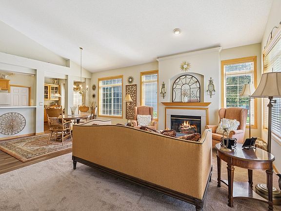 Welcome to this beautifully maintained one-level detached townhome offering comfort, convenience, and style in a desirable neighborhood setting. The inviting exterior features a charming front porch, manicured landscaping, and an attached garage for easy everyday living. Inside, you’ll find a light-filled living room with vaulted ceilings, large windows, and a cozy gas fireplace, creating a warm and welcoming atmosphere.