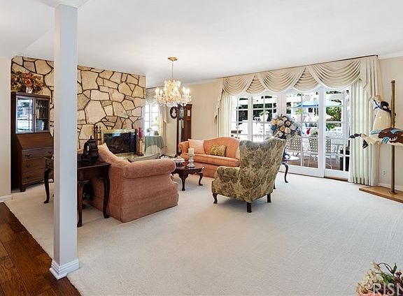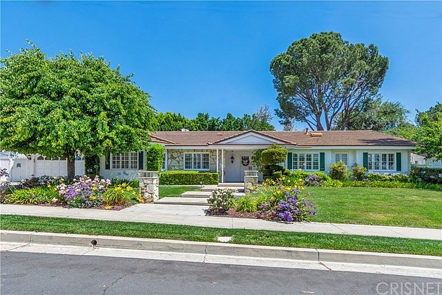 Impressive single story in highly desirable Granada Hills' "Candy Cane Lane" neighborhood* This is the house that catches your eye every time you drive by with its striking curb appeal* Meticulously maintained by long time icon owners* Spacious bright living room with fireplace and French doors to backyard* True formal dining room with chandelier, crown molding, hardwood floors, and French doors to backyard* Refreshed kitchen with slab granite, white cabinets, breakfast bar and nook, opens to sumptuous family room with custom built-in cabinets* Unique Office/Den/Bonus room could be 4th bedroom* Secondary bedrooms are charming and bright* Master bedroom features French doors to in-ground spa and backyard, 3 closets and private bathroom with steam shower* "Secret" hobby room/laundry room with full bathroom off back of 2 car garage* Pull down stair access in garage to ample attic storage* Private backyard has covered patio, gazebo, built in BBQ, fire-pit, huge grass play area, sparkling pool and spa - includes hard-to-find diving board and slide!* True gated RV parking, sport court, extra wide driveway, plus 3 sheds* Great schools including Granada Hills Charter High School***