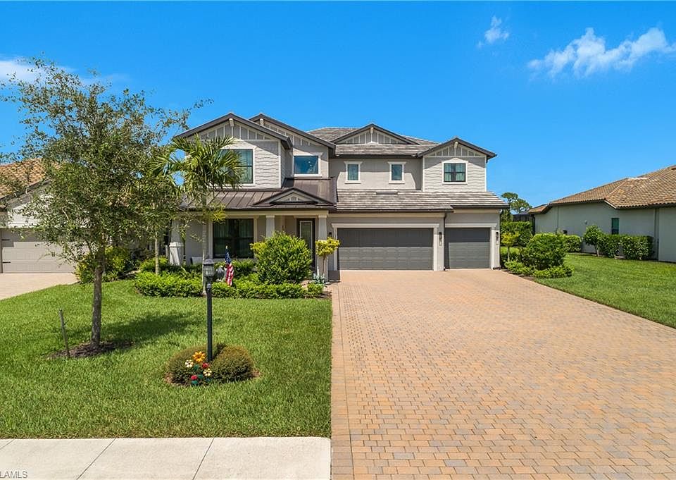 Welcome Home to Resort Lifestyle Living! A rare opportunity to own one of the most sought-after floor plans in Southwest Florida boasting TWO MASTER SUITES with a custom lanai and EXPANSIVE OUTDOOR LIVING SPACE. This expansive Heatherton model was designed with today’s modern lifestyle in mind, offering unmatched flexibility, functionality, and luxury. Whether you’re accommodating extended family, entertaining long-term guests, or simply seeking extra privacy, this home is built to fit your needs with ease. Featuring 6 bedrooms, 5.5 bathrooms, and over 4,600 square feet of living space, this residence delivers abundant room for both everyday living and entertaining. A FIRST FLOOR MASTER SUITE with sitting area provides convenience and privacy for multi-generational living. An extra bedroom at the front of the house offers even more flexibility for guests or a home office. The chef’s kitchen is the true heart of the home, enhanced with an extended layout offering additional cabinetry and a longer countertop, a vented microwave, and an upgraded oversized island with a farmhouse sink. Premium finishes, quartz counters, and stainless-steel appliances make this kitchen ideal for both casual meals and gourmet cooking. The adjoining living and dining areas flow seamlessly, highlighted by an electric fireplace with a feature wall, creating a cozy yet elegant atmosphere. Upgraded wood railings on the staircase and upstairs landing, paired with upgraded floor tile throughout, central vacuum syst, home alarm, wifi extenders, and extended custom kitchen counter and cabinets add to the home’s elevated design. A three-car garage with a utility sink plus a laundry room utility sink ensures convenience, while an extended driveway provides parking for up to 12 vehicles. Step outside to your private backyard oasis, PRIVATE BACKYARD OASIS where FLORIDA LIVING truly shines. The heated saltwater pool and spa completely enclosed with a screen cage and professional lighting for year-round enjoyment. The extended lanai and extended pool cage provide ample entertaining space, while the outdoor kitchen makes dining al fresco effortless. With serene preserve views, this outdoor retreat is perfect for relaxation or gatherings. Even the exterior was designed for comfort and curb appeal, featuring a front porch elevation that adds charm and a welcoming touch. Living in The Place at Corkscrew means experiencing an unparalleled resort-style lifestyle. Residents enjoy a resort-style pool with a thrilling 100-foot waterslide and expansive spa, two waterfalls, lifeguard, full-service restaurant and bars, adult-only bourbon bar, café and marketplace, two-story fitness center, yoga room, spa room, pickleball, tennis, bocce, basketball, dog park, playground, kids care center, and so much more. Located near RSW Intl Airport, FGCU, shopping, entertainment and the beautiful Southwest Florida Beaches.