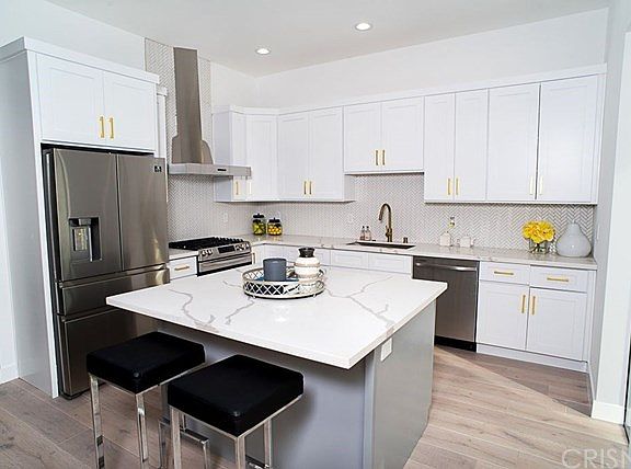 Stunning Encino home! Almost everything is brand new. This 3 bedroom and 2.5 bath home has been totally remodeled. Beautifully modern design with very high ceilings and open floor plan, and lots of light! Brand new kitchen, shaker cabinets with center island, great for eating area. Very large family room, with large sliding doors and view to the back yard. Beautiful bathrooms with Italian tile. Modern design. The house is close to 1,800 sqft and the garage is approximately 400 sqft. The garage is permitted as a garage but can easily turned into a guest house. The garage has new concrete, large sliding doors and drywall. Ready to use as a guest room. The back yard has synthetic grass and is low in water use. This gorgeous home has central air and heat, has recessed lighting and has a laundry room. New Roof, new windows, new patio and new landscaping. Conveniently located close to the 101 freeway, shops and temples.