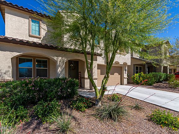 Immaculate home in Estrella Mtn Ranch. Home is light and bright! Gourmet kitchen w/ double ovens, gas cooktop, cupboards galore, granite counters & walk-in pantry. Cupboards/drawers soft close. Fridge stays. Large eat-in dining. Bedroom down w/ full bath connected. Master is huge. Bath w/ sep. tub/shower & private toilet. Laundry door to master closet. Washer/Dryer stay. Master closet is fantastic w/ incorporated office. Large loft upstairs. 3 car tandem garage w/ rafter storage. Backyard w/ built-in BBQ & griddle, large covered patio, pavers, pergola, flowerbed & turf. No neighbors behind! Playground is directly across the street! Short walk down wash to lakes w/ catch & release fishing, comm pools, one heated,, splash pad, water park, canoe use. Community has pickleball, parks & more.