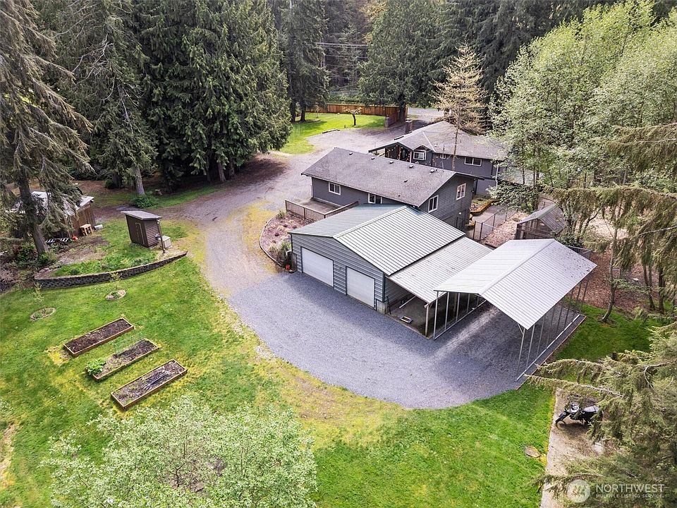 Snohomish Acreage Home w/ Remodeled ADU & finished Treehouse! 2+ acres, 32x28 Shop, Garage & RV Carport, etc. Hobby farm ready w/ greenhouse, chicken coop, woodshed & more. This property is a tranquil forested experience. Updates include kitchen & bath remodels, water filtration system, fencing, etc. Pre-inspected for peace of mind. Ask for Report & UPDATES List. Custom-built log style home welcomes you into a comforting layout that includes kitchen, dining, & living room on main level + 3 rooms & 2 bathrooms. Downstairs sports a large private suite. Covered Patio & Hot Tub. 664 sqft ADU w/ living room, full kitchen, bed & bathroom. Large storage area under ADU. Wired for generator. New electrical in shop. Don't miss the Treehouse!