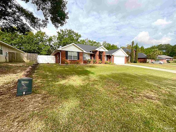 Fabulous find in a convenient Cantonment location! This large family home boasts of plenty of space for your needs! Tastefully decorated, this home is sure to please with the many great features homeowners are looking for! From the functional floor plan including four bedrooms and a sunroom (an additional 244 sq ft), to the beautiful flooring in the main living areas and accented by a gorgeous corner fireplace, you'll be proud to welcome guests into your home. Entertain with ease with the multiple options for dining, as well as room for your favorite in-home activities. Out back, there is a beautiful white privacy fence around your yard with an open patio for cookouts or your morning coffee! The main suite is spacious and offers the amenities for comfort and functionality from the tray ceiling and French doors to the sunroom to the well-appointed bathroom with a double granite vanity, corner garden tub, separate shower, large closets & private water closet. The home is already set up to add a generator--a potential for savings on the cost of a generator for peace of mind. The two car garage adds for additional convenience for ease of parking. The roof was replaced in 2021, Gas water heater in 2021, and Heat pump/AC in 2019. With so much to offer, you need to take a look at this home soon!