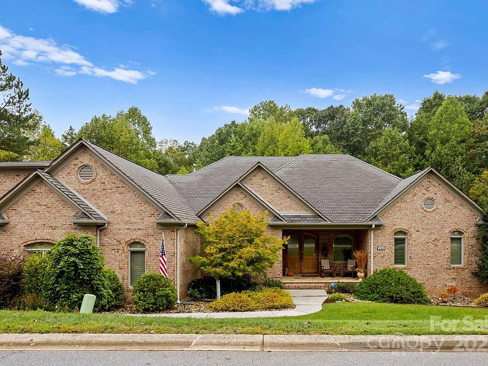 This stunning custom-built Brick Ranch is a true gem, featuring a bonus room and full bath over the garage. Situated on a private double lot within the prestigious Verdict Ridge Golf Club, this home is perfect for multi-generational living. It boasts two luxurious primary suites on the main floor, offering ultimate comfort and convenience. One suite is designed with accessibility in mind and includes its very own office or nursery, while the other provides a tranquil retreat with ample space. The backyard is a true oasis, backing up to a natural area that enhances privacy and tranquility. Enjoy evenings around the outdoor firepit, or take advantage of the ample space available to install a pool, creating your own personal retreat. The expansive screened porch and deck offer additional outdoor living options, perfect for enjoying the serene surroundings. Inside, the open floor plan and high ceilings enhance the sense of spaciousness. Culinary enthusiasts will adore the large kitchen, featuring exquisite granite countertops, tile work, and a convenient pot filler, seamlessly connected to the Great Room. In pristine, like-new condition, this home is adorned with custom features throughout. The lower level offers two additional bedroom suites, a second office, a recreational area, and over 900+sqft of climate controlled storage space, with potential for an elevator. Ideally located within 5 minutes of both the local elementary and high school, this property ensures educational convenience for families. It also provides quick access to Charlotte, with the international airport just 20 minutes away, all while benefiting from low taxes. Enjoy the exceptional amenities at Verdict Ridge Golf Club which requires a seperate membership, including a pool, pro shop, tennis courts, Guilties Bistro, and a banquet facility.