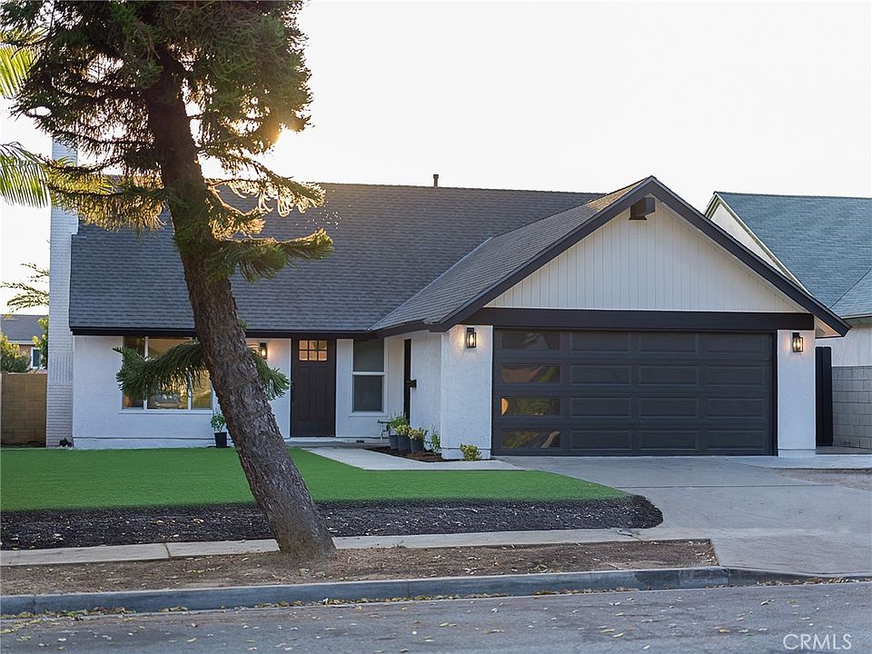 Welcome to this beautifully reimagined single-family home located in the heart of Anaheim. This turnkey 3-bedroom, 2-bath residence offers approximately 1,240 square feet of fully renovated living space on a generous 5,000 square foot lot, blending modern elegance with everyday functionality. As you enter, you're immediately greeted by an open-concept floor plan that creates a seamless flow between the living, dining, and kitchen areas. A cozy gas fireplace anchors the main living space, while modern down ceiling lights illuminate each room with warmth and sophistication. The brand-new kitchen is the centerpiece of the home, featuring stunning quartz countertops, all-new cabinetry, and a full suite of modern appliances. Whether you're preparing a quiet meal at home or entertaining guests, this space is designed to impress. The bathrooms have been thoughtfully updated with sleek finishes, new vanities, and designer tile work, offering a spa-like atmosphere. Throughout the home, new laminate flooring adds warmth and continuity, while fresh interior paint brightens each room. The updated outdoor paint enhances the home’s curb appeal, giving it a clean and contemporary look that complements the fully redone exterior. Additional upgrades include a new roof, a newly installed two-car garage door, and a fully functional sprinkler system that supports lush landscaping in both the front and back yards. The expansive lot provides ample space for outdoor enjoyment and gardening. With every surface touched and no detail overlooked, this fully renovated property is move-in ready and ideally situated near schools, shopping, dining, and freeway access. This isn’t just a house—it’s a fresh start in a home that feels brand new.