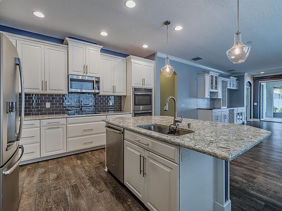 Large islandSerene backyard oasisUnder-roof screened lanaiTop-of-the-line appliancesCozy porchGourmet kitchenLvp flooring