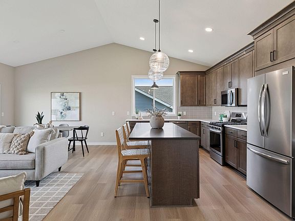 Welcome to this stunning new construction split-entry home that blends modern design with functional living. The main level features an open-concept kitchen and family room, highlighted by a vaulted ceiling and a striking fireplace that serves as a warm focal point. The kitchen is a chef’s dream, complete with an extra-large center island perfect for entertaining. The spacious primary suite includes a luxurious bath with a double vanity and a generous walk-in closet. A conveniently located main floor bath serves the second bedroom, offering both comfort and privacy. Downstairs, you'll find a large walkout family room that provides the perfect space for gatherings or relaxing evenings. The lower level also includes two additional bedrooms, ideal for guests or home office needs. With great curb appeal, stylish finishes throughout, and a prime corner lot location. This home is move-in ready. Don’t miss your chance to own this beautifully designed home with immediate occupancy available! Other floorplans are available. Ask about the buydown incentive!
