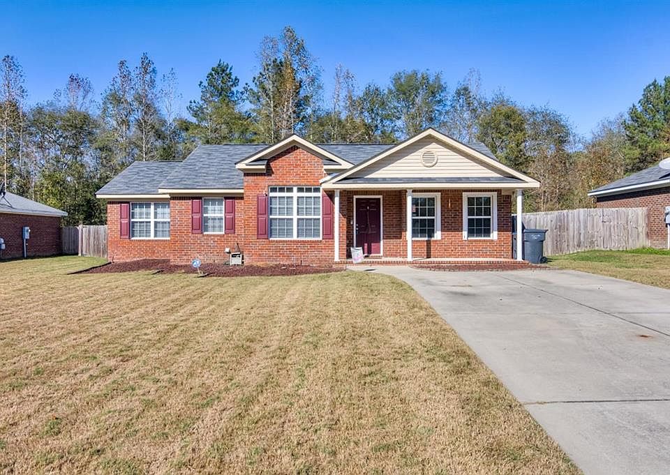 Beautiful 4 bedroom, 2 bath, low maintenance all brick home with vinyl soffit and fascia exterior. Split floor plan with the master on the left side of the home and the other two bedrooms on the right and one in the front center with tall ceilings that would double as a great home office or man cave. Located on the cul-de-sac where you won't have to worry about speeding traffic. The home features a big master bedroom suite and his and hers walk in closets. There is a separate laundry room. You also have a wonderful covered front porch overlooking the front lawn. The backyard has privacy fence on the sides and chain link fence that backs up to beautiful wooded green space. This home has been loved by its current owners and you feel it the moment you walk through the door.
