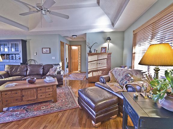 Nestled on a great 2.4 acre mature country lot in Riverfork Estates, with wonderful landscaping, you'll love this 3200+ SQ Ft home the moment you pull in the driveway. With an attached 2 car garage and a detached one car garage, the home offers a great open floor plan with a cathedral ceiling and gas log fireplace, hardwood flooring, split bedrooms, master bath with a walk-in closet & jetted tub, finished walkout basement. Also, you'll find an oversized deck and patio, with room for a garden. Enjoy boating, fishing, swimming and walking trails at the private park.