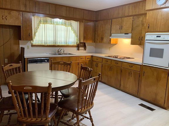 Pole barnStorm shelterNew lvp flooringTwo storage shedsSpacious eat-in kitchenOriginal hardwood floorsBuilt-in electric stove