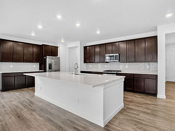 Step inside to an open-concept main floor that immediately impresses. The chef’s kitchen features stainless steel appliances, a gas stove, and a massive quartz island that flows perfectly into the bright great room with luxury vinyl plank flooring — ideal for entertaining or relaxing.