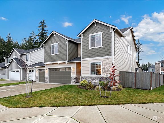 Ideally positioned on a coveted corner lot, this stunning Coronado plan home is better than new. The open main floor features a spacious great room, a gourmet kitchen, a sunlit dining area, and a convenient main-level bedroom with a 3/4 bath. Upstairs, enjoy a versatile loft, a laundry room, and two large bedrooms with walk-in closets. The luxurious owner's suite offers a private retreat with a spa-like en-suite and an expansive walk-in closet. Complete with a finished three-car garage with epoxy flooring, in-ground sprinkler system, and a fully fenced backyard, this home is perfect for entertaining. Conveniently located near dining, shopping, parks, JBLM, and major freeways. Welcome Home!
