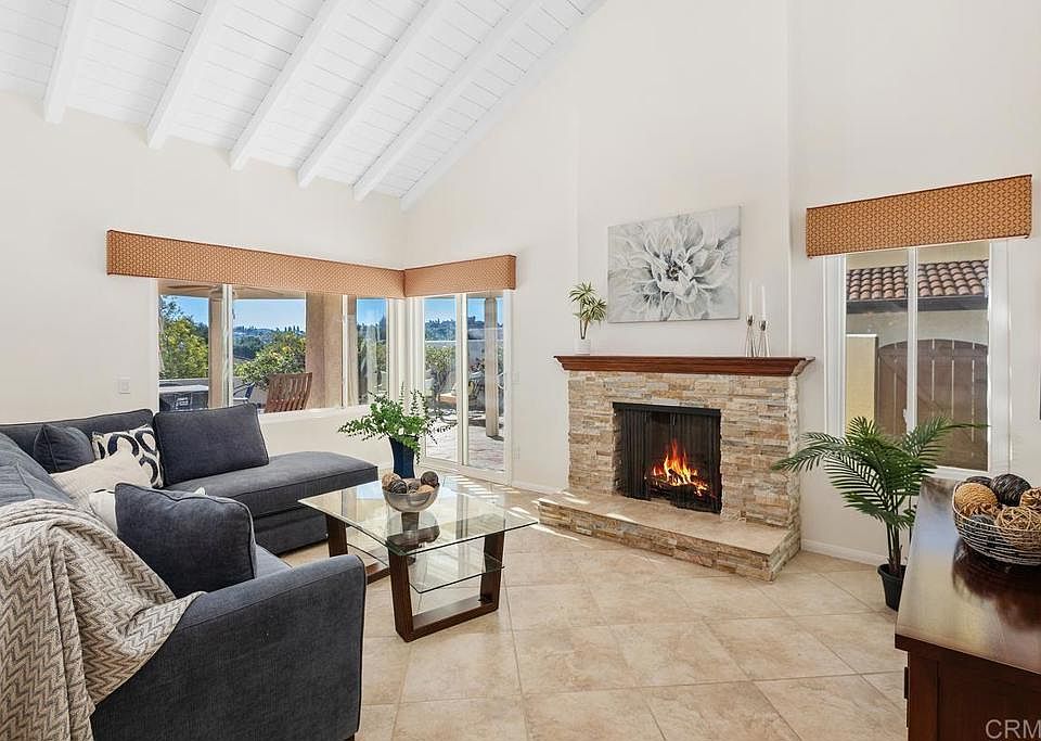 Welcome to this beautifully maintained single-story home! This inviting residence features 3 bedrooms (one is currently being used as an office, complete with built-in storage). The interior has been freshly painted and updated with brand-new carpet throughout, and plantation shutters adorn the windows. The spacious living room showcases vaulted ceilings, a gas fireplace, and abundant natural light, creating an inviting and open atmosphere. The kitchen is equipped with stainless steel appliances and ample cabinetry. The primary bedroom features a large walk-in closet and a sliding glass door that provides easy access to your expansive backyard, where you can relax and enjoy peaceful views of the community and surrounding nature. Experience the serene and active lifestyle that Oaks North, one of San Diego’s most desirable 55+ communities, is known for with beautifully maintained grounds, friendly neighbors, and resort-style amenities.