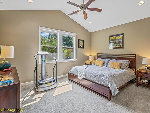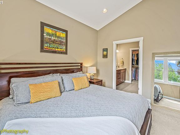Whipple Creek Village, the premier 55+ gated Community in Clark County. Open concept, vaulted main-level living backs East to protected natural habitat. Private upstairs guest quarters, owner's suite on main floor w/walk-in shower. Third bed/bath on main + office w/French doors (flex dining space). Features: hardwoods, tile, quartz, high-efficiency heat/cool, fireplace, & 9" ceilings, large covered patio. Rare 2,142 sf floor plan is largest in development. Minutes to amenities!