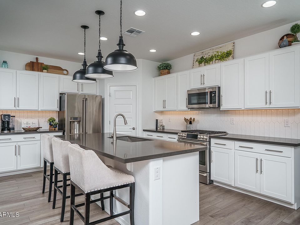 Welcome to this beautifully designed home in Allen Ranch, where modern comfort meets timeless style. Inside, you'll find bright neutral tones, stylish shutters, and contemporary fixtures throughout. The spacious great room flows into a sleek kitchen with quartz countertops, pendant lighting, a breakfast bar, and upgraded Cafe stainless steel appliances. A downstairs bedroom with a walk-in closet is perfect for guests! Upstairs, enjoy a large loft and generously sized bedrooms. The primary suite offers a walk-in closet, dual sinks, and an oversized shower. The backyard is easy to care for with artificial turf and pavers. Do not miss out!