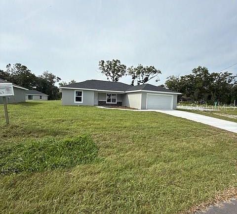 One or more photo(s) has been virtually staged. Beautiful 3 BED / 2 BATH new construction home located in Dunnellon Oaks! Brand new paved asphalt roads throughout entire community - No HOA's! Luxury Plank Vinyl flooring throughout all living and common areas, tile in bathrooms, and carpet in the bedrooms. Open floor plan with dedicated dining room and large kitchen island area, all done in neutral, pleasing colors. Inside laundry with W & D hook-ups. Walk-in closet + regular size closet in Master bedroom and a double-vanity in master bath. Stainless steel appliance package in the kitchen and pantry. Cabinets are white shaker-style with light luxury quartz countertops. Please see attached documents from Builder (Builders Contract Addendum & Warranty) Actual photos are attached plus virtually staged model home photos. This community is located off of Hwy 484 just 1 mile from the Florida Trail Pruitt Trailhead, minutes away from Rainbow River, and many other natural playgrounds! The adorable Cannon Farms is directly across the street offering seasonal activities. ***Inquire about our preferred lender deals! Builder offering to contribute to buyer’s closing costs or help with rate buy downs! We can be flexible to help our buyers get into a beautiful home! ***