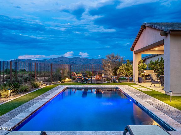 STUNNING MOUNTAIN VIEWS, PREMIUM LOT BACKS TO THE TONTO NATIONAL FOREST AT TRILOGY VERDE RIVER GOLF COMMUNITY – This home is designed to enjoy the outdoors! Beautiful mountain views from Great Room with triple sliding doors that open to the covered patio and amazing backyard; The large kitchen is ideal for entertaining with a spacious island, quartz counters, beautiful cabinets and pantry; Enjoy waking to mountain views from the Owner's Suite with a luxurious bathroom and walk in closet; Welcome guests with a spacious Guest Room; Plus, 2 car extended garage, water softener, RO system. Verde River Golf and Social Club includes golf, tennis, pickleball, spa, pools, Restaurant, plus more. This community is serviced by EPCOR water. Experience Trilogy at Verde River, a stunning resort style community nestled against the beautiful Tonto National Forest. The amenities at Verde River are spectacular. The Community boasts an 18-hole Championship Golf Course with a picturesque driving range, putting green, and separate chipping/pitching practice areas. One visit and you will understand why the PGA Southwest Section selected Verde River Golf & Social Club to host the AZ Senior Open and AZ Match Play Championships in 2020, 2021 and 2022. The active lifestyle amenities continue with pickle ball and tennis courts, with Clubs designed for social or competitive play. Adjacent to the sport courts for your convenience are bocce ball courts and an open grass area for social gatherings.
