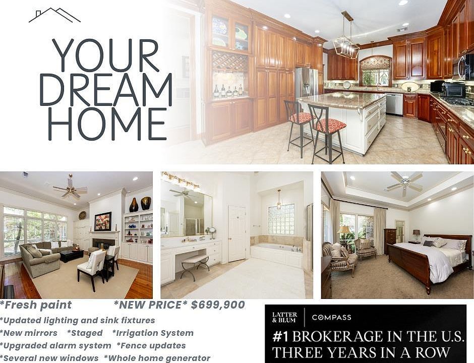 Back and better than ever! This stunning home has been beautifully refreshed with new interior paint, updated light and sink fixtures, stylish new bathroom mirrors, upgraded counters in the primary bath, and an enhanced alarm system for peace of mind. Step inside and be impressed by everything this home has to offer: soaring ceilings, an abundance of natural light streaming through brand-new living room windows, and an open-concept floorplan perfect for entertaining. The spacious kitchen features a massive island, floor-to-ceiling cabinetry for incredible storage, and even a hidden built-in bar. Also enjoy both formal and casual dining areas, plus two fireplaces that add warmth and character. The flexible layout offers 5 or 4 bedrooms plus a bonus room or office designed to fit your lifestyle. The primary suite overlooks the tree-shaded patio and includes a private bath with dual vanities, a walk-in shower, soaking tub, and a large walk-in closet. Conveniently located off the suite are the laundry room, two additional bedrooms, and a full bathroom. Off the kitchen, find a private second bedroom wing with easy access to a third full bathroom, the garage, and the backyard. The larger bedroom here makes a perfect office, media room, exercise space, or playroom. Additional highlights include: a whole-house generator, a manicured yard with sprinkler system, a 20' x 12' heated & cooled flex space off the 3rd-car garage (ideal for storage, workshop, or man cave), on a prime corner lot near the end of a quiet cul-de-sac. This home truly has it all; style, space, smart upgrades PLUS a new price!! Don’t miss your chance to make it yours. Schedule your private showing today!