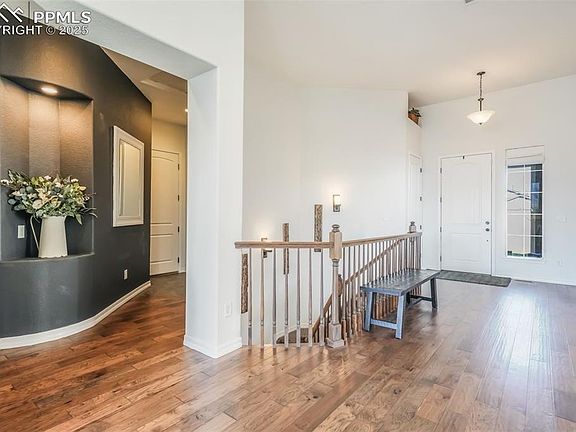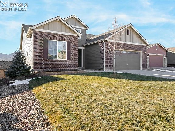 Welcome to this stunning ranch-style home, perfectly situated on a quiet street in the highly sought-after D38 school district. Designed with comfort and style in mind, this home offers an inviting open-concept layout, vaulted ceilings, and plenty of room for everyone. Entering the home, you are greeted by gorgeous hardwood floors throughout the living areas. The heart of the home is the gourmet kitchen, which features stainless steel appliances, double ovens, a gas range, a walk-in pantry, and a huge island with tons of counter space—perfect for cooking and entertaining. An eat-in area and separate dining room add versatility to your dining options. Step outside onto the composite deck to enjoy stunning mountain views, creating the perfect backdrop for your morning coffee or evening gatherings. The primary suite is a serene retreat with ample space and a 5 piece ensuite bathroom. A secondary bedroom and full bathroom are also conveniently located on the main floor. The finished walkout basement offers three additional bedrooms and another full bathroom. One bedroom is oversized and ideal for use as a media room or flex space. The basement also includes a spacious living room, a gym area with durable LVP flooring, and unfinished storage space. Additional highlights include a turf backyard for low-maintenance outdoor enjoyment, air conditioning for year-round comfort, and a convenient main-level laundry room. Located in a peaceful neighborhood with easy access to amenities, this home combines modern conveniences with natural beauty. Don’t miss the chance to make this exceptional property your own!