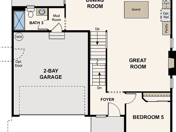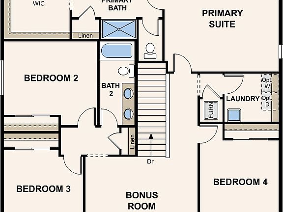 The Warren at Liberty Bay Vista offers all the ingredients for comfortable living and elegant entertaining. As you enter the foyer from the ample front porch, you'll find an impressive open-concept layout-anchored by a spacious great room leading to an impressive kitchen with a large center island and a charming breakfast nook with direct access to the covered patio. Additional main-floor highlights include a versatile study and a valet entry. The upper level boasts an expansive bonus room and three generous secondary bedrooms sharing a full hall bath. You'll also love the deluxe owner's suite-showcasing a sprawling walk-in closet and a private bathroom with dual vanity sinks and a walk-in shower. The sizable basement-boasting a large game room, a secondary bedroom and a full hall bathroom-also comes standard with this home.