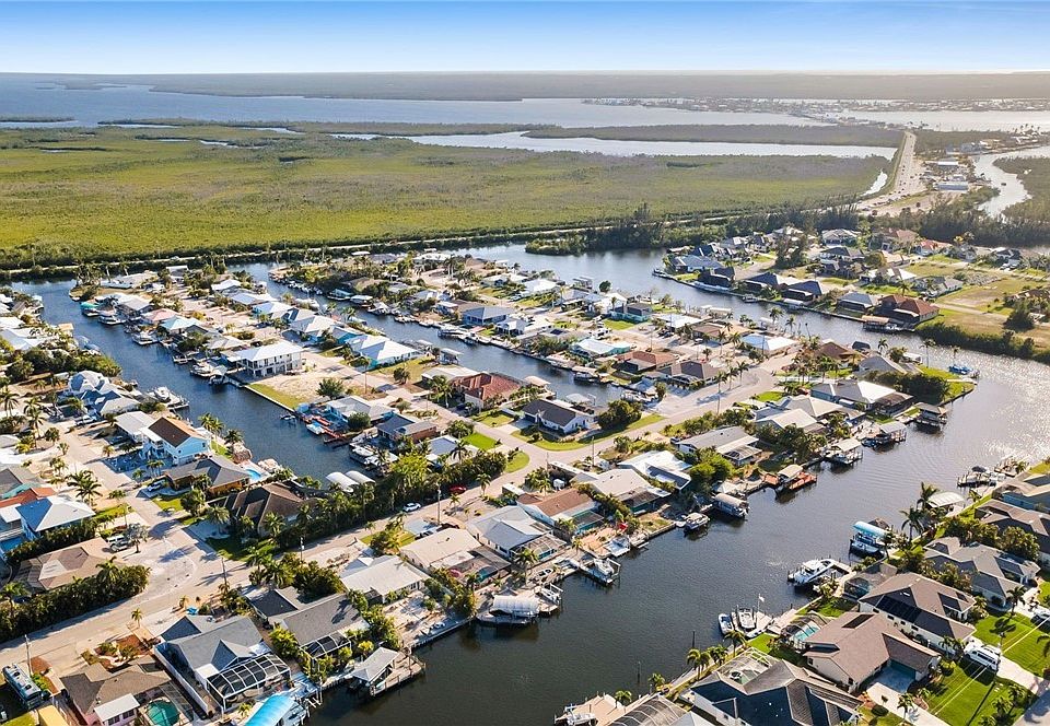 Discover island charm and waterfront luxury in this boater’s paradise, perfectly located just minutes from open water with no bridges to slow you down. Situated on an extra wide canal with a grand view, this home offers the ultimate setting for marine life lovers—watch dolphins, manatees, and fish right from your backyard. The property is ideal for boating enthusiasts, featuring two boat lifts, a walkout dock, and easy access to the Gulf. Boat to one of the local’s favorite restaurant and bar, Miceli’s, is a breeze, and you're just minutes from Matlacha Pass, with quick navigation to the islands of Ft. Myers Beach, Sanibel, Captiva, Pine Island, and Useppa. A new roof installed in 2023 adds peace of mind, while the remodeled kitchen shines with stainless steel appliances, quartz countertops, and modern LVT flooring. Entertain in style on the oversized lanai with a built-in Bull Grill, a saltwater pool, and a detachable canopy shade for hot summer days. A pool bath and outdoor shower make rinsing off after a swim or boat day a breeze. Convenient to town for daily needs, you're close to all that Pine Island and Matlacha have to offer, including shopping at unique boutiques, great local restaurants, and vibrant entertainment. This home blends comfort, style, and unbeatable location into one incredible waterfront lifestyle.