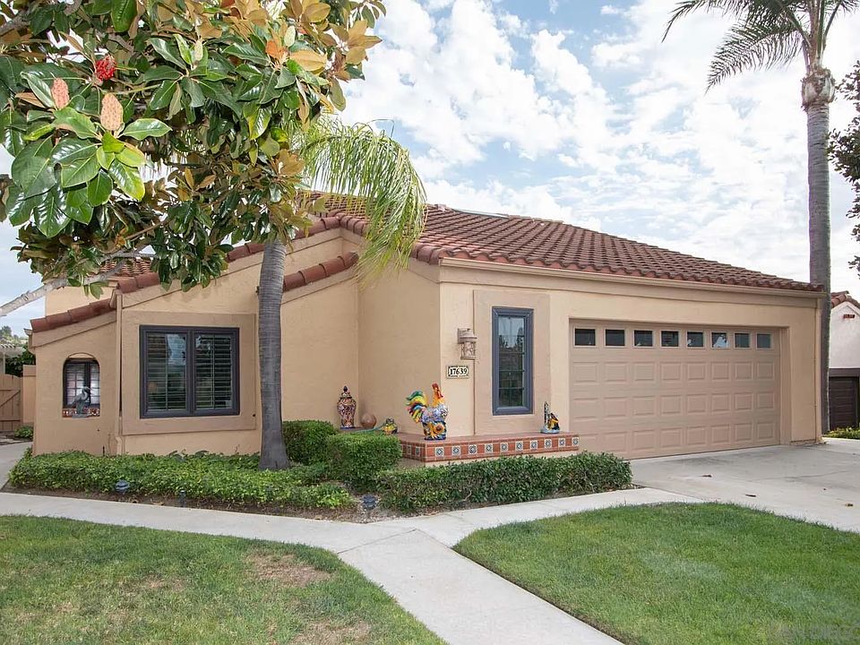 Perched high on a hill in the gated community of Chapala, this highly upgraded 2-bedroom home with a den, has panoramic views of the hills and evening lights with peek-a-boo view of the Oaks North Golf Course! Every detail in the home is carefully planned, from the Golden Topaz hardwood floors that flow throughout the living room, dining area, and hallway to the towel warmer in the main bathroom. The vaulted ceiling with skylight in the living room makes this home light and bright and you will love the custom mantle and marble fireplace surround. You will be cooking with gas in the spacious eat-in kitchen with bay window overlooking the gorgeous view, crisp white cabinets, stainless steel appliances and quartz countertops. This property includes a spacious wrap-around patio with aluminum patio covering that offers expansive views, and built-in barbecue, making it perfect for hosting gatherings of friends and family. Oversized garage with extra parking for a golf cart. Extra storage in the attic with a pull-down ladder. Dual-pane windows and doors throughout. Furnace, air conditioner, and roof recently replaced. Meet your friends at the Oaks North Community Center for a swim, pickle ball, tennis, lawn bowling, or one of the other many activities and classes offered.