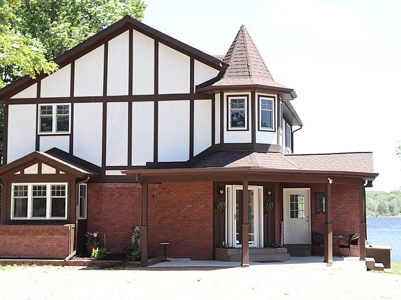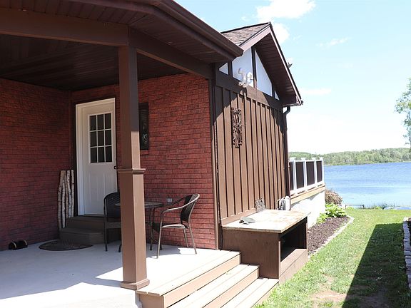 That amazing lake home retreat with acreage youve been looking for is here! This English New Tudor style home sits on a quiet dead-end road, with 1,600 feet of scenic waterfrontage, on an incredible 17 wooded acres with an extra deep heated two car garage. This wildlife paradise brings the tranquility of the outdoors with all the interior luxury comforts. The entire home is meticulously maintained and was expertly restored by Gold Coast Design LLC in 2020. All furniture shown in the listing photos is available and negotiable. Welcoming you in, the open foyer features beautiful tile work with an abundance of natural lighting. The breathtaking lake views in the dining room create a special serenity for enjoying meals together. The kitchen features a live edge maple breakfast bar, concrete countertops finished with a clear coat embedded with diamond dust, all new appliances (2020), a subway tile backsplash, and new shaker style cabinets (2020). Off the kitchen is the mudroom/laundry room with a passthrough to both the front yard and the backyard and includes a new washer and dryer (2020), an on demand natural gas water heater (2020), and new water softener (2020). The main floor bathroom features in-floor heating over the tiled floor and a walk-in shower also all new as of 2020. The sunroom off the dining room features wood beam accents on the ceiling and nearly 20 feet of wall-to-wall triple coated, Low-E, heat efficient windows (2020) to enjoy the panoramic lake views even through the Wisconsin winters. Heading upstairs you will have 4 spacious bedrooms, two bedrooms with breathtaking lake views and all 4 bedrooms feature 2+ windows to bring in ample natural light in every room. The upstairs bathroom features a granite countertop vanity, a jetted bathtub, and built-in shelving. Also, all new and renovated in, yep you guessed it, 2020. There are multiple heating and cooling options completely adjustable to the different areas of the home. There are two MRCOOL mini splits for both heating and cooling, one on the main floor in the dining room and one upstairs in the hallway. Each bedroom has its own electric baseboard heater. The home also has a forced air furnace. The rear deck off the sunroom leads to the backyard with a gentle slope to the lake. Enjoy the firepit constructed from cobblestones pulled from the 1800s Chicago stockyards as you contemplate lifes wonders. All watersport equipment (life preservers, fishing rods, kayaks, canoes, paddles, and dock) are available and negotiable. The extra deep, two car heated garage also has a separate workshop area. There is also a shed with a lean to on each side for all the storage you could ask for. During the renovations in 2020 there was a header added off the dining room with the hope of further remodeling to add a main floor master suite with beautiful lake views. Which means this 100% move in ready lake home also has the potential to expand. The home is on a four foot deep poured concrete foundation which is also new as of 2020. The home itself is incredible but add in the land it sits on this is truly a rare find. The 17.23 acres includes lakefront footage on both sides of the property, majority of the lakefront is on the northside however there are two very small parcels on the south side also to prevent anyone building there. On the northside among the wooded acres there are three small campsites to enjoy. The current owners have enjoyed this slice of paradise for 46 years, but they are excited to be able share its beauty with the next owners. This home has been rented out for the past six months as an Airbnb, for information regarding the Airbnb earnings please see the commercial MLS listing. The sellers are open to either a residential buyer or a commercial buyer, please reach out to the listing agent for more details.