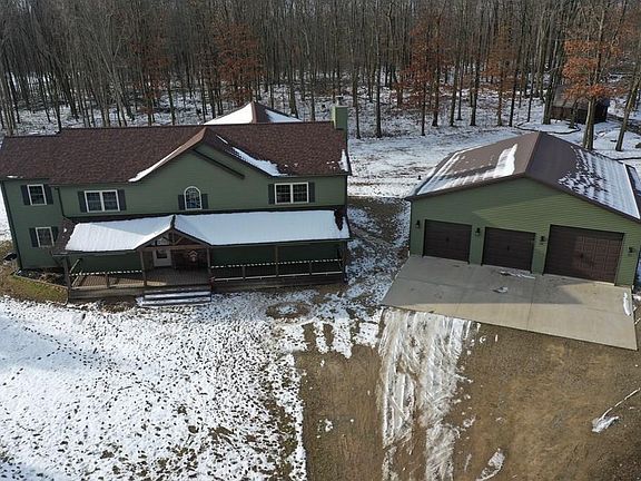 Tranquility is nothing short of what this home implies on almost 29 acres. This is a 3,550 SQFT two story splendor..promoting easy living..It's charming! It's elegant! It's rustic! It's perfect! Providing abundant places to enjoy outdoor living. Inside guests are instantly welcomed into the open space leading to the 26' tall vaulted ceiling great room. Modern and move in ready! This home has been carefully designed to allow the new owners to enjoy all the space, both inside and out with a very low maintenance exterior. The large master bedroom located on one end of the house has an exceptionally deep walk in closet and a master bath. Free residential gas available. The property has 2 pear trees, 3 apple trees, 2 peach trees, and 2 cherry trees, the fields are fenced with high tensile electric fences with 8 frost free valves located throughout the fields. There is also a stream on the back left corner. Don't forget about the 40'x40' detached 3 stall garage! Ask for the 3D tour!