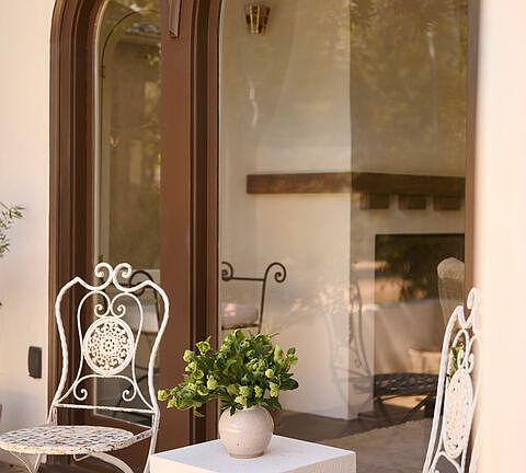 Timeless design meets romantic restoration in this 1920s Spanish, located minutes from Pasadena's character-rich, Bungalow Heaven. Reimagined by Studio Marrant over the course of a year-long renovation, this 3-bed, 2-bath home effortlessly combines old world elegance with modern updates and beautiful workmanship. 1764 E. Orange Grove inspires peace and serenity grounded by original wood details, honed travertine, handmade tiles, bespoke cabinetry, and abundant natural light. A pathway through mature rosemary bushes and native plants usher you into the living room with coved ceilings and newly reconstructed gas fireplace. Carefully restored arched wood windows frame sweeping views of the San Gabriel Mountains in the distance, turning pink at dusk. In the evenings, the home glows with thoughtfully curated vintage and custom light fixtures. Off the dining room, an updated kitchen inspired by European charm, is outfitted with high-end appliances and fixtures, including Bertazzoni oven, Fisher/Paykel refrigerator, Rohl brass faucets, custom cabinetry, luxe marble countertops and graciously sized center island. From the hallway, two bedrooms with generous closet space, lead to a Pinky's iron Dutch door looking out on the private, flat yard. The ensuite primary evokes feelings of a Mediterranean retreat, with a vintage Barvoier & Toso glass pendant hanging over the deep soaking tub, surrounded by oak custom cabinetry and concretta plaster walls. A second set of Pinky's iron doors open to a patio with ORCA tiles and custom metal work, ready for morning lounging and an evening apertivo. Wander outside, through citrus and pomegranate trees, following a stone pathway to garden boxes and a garage with alley access. Located in one of Pasadena's most desirable neighborhoods, moments from local cafes (Woon, Millie's, Deluxe 1717), parks, and the charm of Old Town. This home is a rare opportunity to experience historic character, considered design, and quality craftsmanship.
