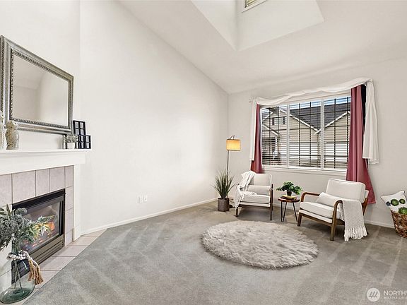 Nestled in a highly sought-after location in a quiet dead end near Homestead & Meadow Greens, this well-appointed 2BR 2.25 BA condo offers an exceptional blend of comfort & convenience. The soaring vaulted ceilings & gas fireplace create a warm, inviting ambiance in the gathering rm, while hardwood floors enhance the home. The kitchen boasts abundant work spaces & storage. A slider in dining rm opens to a private patio, leading to a beautifully maintained lawn w/fruit trees. The main-floor primary suite features a full bath & walk-in closet. Upstairs, a generous family rm, 2nd bedroom, & office provide ample flexibility. Separate laundry rm, plentiful storage + 2-car garage. This home is just moments f/parks, dining, recreation & bus line