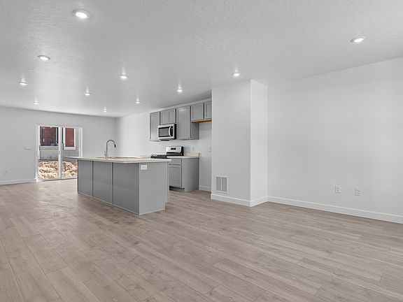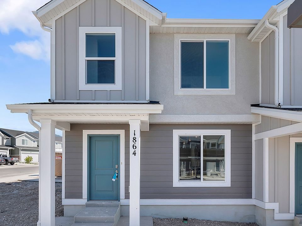 BRAND NEW!! January closing! Affordable & Beautiful the new PIONEER A townhome with covered parking is back in Western Acres in Tooele Utah. Open concept living laminate flooring covering the whole main floor!! Plenty of storage in the pantry, closet and crawl space. The second floor has three bedrooms including a primary bedroom with a private bath with an integrated walk-in closet, a laundry room, and another full bathroom for the other two bedrooms. No garage, access and use of 1 covered parking space per unit. Ask me about our preferred lender incentive, generous home warranties and Smart Home Package. The actual home may differ in color, material, and/or options. Pictures are of a finished home of the same floor plan, and the available home may contain different options, upgrades, and exterior color and/or elevation style. Square footage figures are provided as a courtesy estimate only and were obtained from building plans. No representation or warranties are made regarding school districts and assignments; please conduct your own investigation regarding current/future school boundaries.