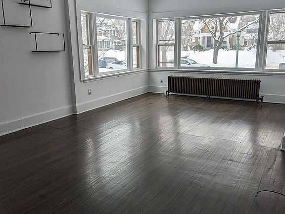 Two-bedroom one bath condo for rent in a 4-unit condo building residential area. Features a large living room w/ built-in buffet, formal dining room with large windows, updated kitchen w/stainless steel appliances including dishwasher and updated bath and sunroom. Clean finishes with high ceilings and beautiful hardwood floors makes this a great place to call home. In-unit washer dryer. One dedicated parking stall w/street parking available and patio to enjoy the outdoors. Heat/water/sewer/trash/snow/lawn included in rent, tenant responsible for electric. No dogs allowed. Max 2 cats allowed with pet deposit.