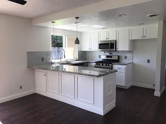 Beautifully remodeled home inside and out. Approximately 1500 sq feet of new wood flooring in the living areas, new carpet in the bedrooms, fresh paint inside and out, granite counters in kitchen and baths, new stainless steel farmhouse kitchen sink, stainless gas range with custom pot filler, new stainless dishwasher, new light fixtures , large fenced back yard and possible RV parking and SOLAR!