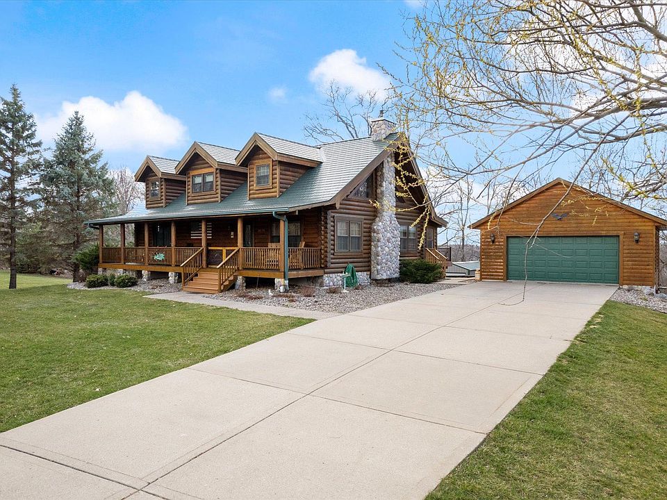 Welcome home! This immaculate custom log home on 2.03 private acres features modern high efficiency amenities and ample private space to enjoy the serenity that its location provides! This 4 bed 4 bath estate in the coveted Tyler Hills 2 Development boasts many updates. Enjoy cooking in the kitchen with beautiful solid surface countertops, stainless steel appliances and custom metal light fixtures. All living amenities are on the main level. The roof was recently replaced with an architectural steel roof with transferrable warranty. The home has a natural gas Generac generator with automatic switchover. Other updates include Furnace, A/C, In Floor Heat Boiler, Garage Heat, storage shed, large refinished deck, and several new windows. This is truly a one-of-a-kind retreat within city limits.
