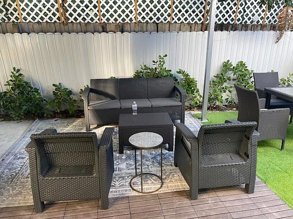 Beautiful Fully Furnished property located in the heart of Little Havana! With a large shared terrace featuring a dining table, Conversational set,& Peaceful back yard where you'll enjoy incredible sunsets and weather in Miami! 2 Blocks Walking distance to "Calle Ocho" where you can enjoy all of the Historic Restaurants and Entertainment centered around the Cuban Culture! Super Close to Brickell, Downtown Miami & Miami Beach, Coral Gables, South Miami 2 bedrooms Bathroom in hallway In-Unit washer + dryer Free Wifi 500+mps Extremely vibrant and hip neighborhood Secure building with limited residence Beautiful Front lawn & Backyard with eccentric outdoor furniture Living Room Space Futon Sofa Bed Mini Bar Breakfast Counter for 2 Large Custom Window with Garden View Bedroom 1 King size, Tempurpedic mattress with 4 King Size Plush pillows. Bedroom 2 Queen size beds, each with Tempurpedic mattresses and plush pillows. Tall Standing Mirror Bathroom Multi-Headed Spa Shower with high-pressure Massage & Temperature Control Kitchen Stocked kitchen with dishware for up to 6 people. KERUIG Machine, Stainless Stain Appliances Washer & Dryer Balcony 2.7 M to Jackson Memorial & VA Hospital 6 Min to Downtown Miami 10 Minutes to Miami beach *LGBTQ Friendly *Pet Friendly for a fee Owner will cover Water & Electricity Free Wifi available Free Street Parking Bi-weekly Cleanings