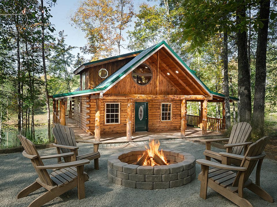 This inviting three-level cabin offers the perfect blend of rustic charm and modern comfort—just minutes from favorite attractions like Natural Bridge State Resort Park, Sky Bridge, Nada Tunnel, and the area's best hiking, climbing, and kayaking adventures. Featuring 2 bedrooms and 2 full baths, plus a loft that serves as a third non-traditional bedroom, this versatile layout is ideal for families or groups. Enjoy serene pond views from the wrap-around covered porch, unwind in the hot tub, or relax on the private third-floor deck surrounded by trees. The basement suite provides a cozy retreat with its own bedroom and bath, perfect for guests or added privacy. Whether you're looking for a peaceful weekend getaway or a great rental investment, this cabin in the Red River Gorge offers nature, relaxation, and adventure all in one. Schedule your private showing today! (Living room furniture picture and fire-pit picture are virtually staged to show the potential)