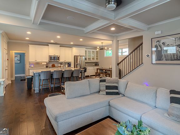 In the historic community of Williams Park, (just minutes from The Battery, Truist Park, premier shopping/dining, and major highways) awaits this gorgeous 4BD/3.5BA home featuring farmhouse modern accents, perfectly blending warmth, sophistication, and functionality at every turn. Step inside and immediately feel the craftsmanship - from the coffered ceilings that crown the spacious family room to the custom built-ins and integrated sound system that make entertaining effortless. The open-concept main level boasts wall to wall espresso hard wood floors (which extend to the entire 2nd level) and offer a seamless flow between the living room, dining space, and chef-inspired kitchen which showcases pristine granite countertops, stainless steel appliances, upgraded cabinetry with elegant finishes, and an oversized island perfect for gatherings. Imagine cozy evenings by the fireplace, hosting dinner parties under recessed lighting, or simply unwinding in the comfort of the family room blanketed by the warmth of natural light. Upstairs, retreat to the serenity of the primary suite - your personal oasis with a spa-worthy frameless-glass tiled shower, dual vanities, and ample closet space. The secondary bedrooms provide flexible, functional layouts, ideal for home offices, media/game rooms, or guest suites - designed to suit your modern lifestyle. The conveniently located 2nd floor laundry room makes daily cleaning easily accessible from any area of the house. Every detail of this home has been thoughtfully curated - from the custom-built mudroom nook to the upgraded lighting and fixtures that elevate the aesthetic throughout. Outside, enjoy your personal courtyard-style sanctuary, ideal for morning coffee or weekend grilling, surrounded by countless landscaping possibilities and the peaceful charm of a quiet, tree-lined street. A rare combination of city accessibility and neighborhood tranquility sought by many. So don't miss your opportunity. Schedule a tour today!