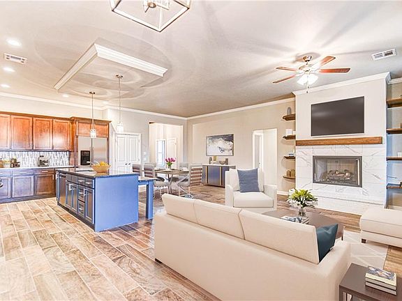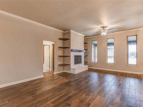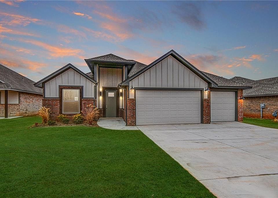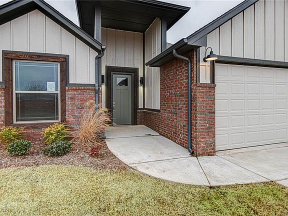 This brand new Edmond home in the award winning Deer Creek Schools is absolutely gorgeous! Stunning exterior with brick, accent colors, and stained trim work. Huge open floor plan with wood look tile and a marble patterned tile fireplace with builtin shelving on either side. Kitchen features modern cabinetry, convenient breakfast bar, and a large pantry. Tray ceilings in master suite with a barn door leading master en suite. Master en suite features double sinks on a granite vanity, a walk-in shower, and a large soaking tub. Spacious laundry room with counter space and cabinetry. Backyard features a covered back patio. This home is absolutely perfect! Neighborhood will have a dogpark and a playground! *Virtual tour of home available!*