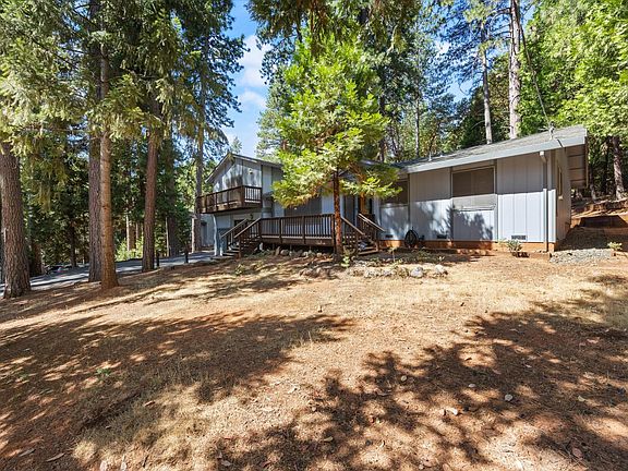 This perfect mountain retreat is waiting for you! The home features a spacious layout and storage for all of your projects and activities. Every room in this home highlights the beauty of living in the trees from the large windows throughout to the vaulted skylights in the kitchen. Kitchen, dining room and living area are ready to host your get togethers with space & storage for everything you need. The primary suite is elevated to it's own level with a large slider and deck perfect for enjoying morning coffee outdoors. Inside, the suite offers multiple closets, linen storage, sitting area & en suite bathroom. The attached garage is over-height and includes a separate storage/workshop room with storage cabinetry. The 2nd garage is fully insulated and has a pot belly stove & wall AC. Outside, the over .40 acres is ready to for you - whether sitting by the campfire or simply enjoying the view! You will love living just minutes from town and a short drive to everything the region offers including lakes, mountain activities and Tahoe!