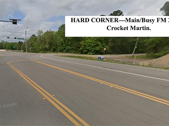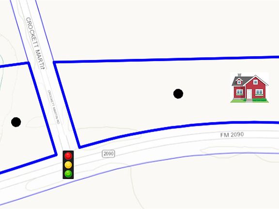 PRICE IMPROVEMENT! HARD CORNER at TRAFFIC/STOP LIGHT, +/-4.92 UNRESTRICTED acreage on the Corner of FM 2090 & Crockett Martin Rd. Property has +/-736 feet of frontage on FM 2090 and +/-292 feet of frontage on Crockett Martin Rd with a STOP LIGHT. There is a nice 1200sf brick home on the property that is livable but needs TLC. Great opportunity to live here and also run your business. There is also a small portion of the property on the west side of Crockett Martin w/ +/-242' frontage on FM 2090 & +/-315' on Crockett Martin that would be great for signage for your business.-- Ideal location for Gas Station/Convenience Store, Restaurant/Fast Food, Retail Center. This area is BOOMING - with new construction subdivisions & development all along FM 2090 & Crockett Martin. CISD-Caney Creek High & Moorehead Junior High are 1 mile from this property on FM 2090. EXCELLENT LOCATION between I45 and Hwy 69 with unlimited uses to serve this heavily populated & growing area.
