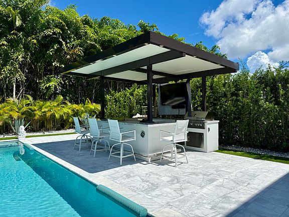 This one-of-a-kind Polynesia model in Lotus showcases extensive custom upgrades and a showstopping outdoor oasis. Set on a deeper and wider-than-standard lot enhanced by a fenced-in easement fully covered in premium turf, the backyard offers both extra space and resort-style privacy. You'll find a rare double-island kitchen, designer cabinetry, and high-end appliances inside, while outside is built for entertaining with a massive pool and spa, pergola-covered summer kitchen, and private putting green. Upstairs, a motorized built-in in the loft reveals a sleek, tech-ready workspace at the push of a button. The garage features a motorized overhead platform for easy-access storage, and the attic includes a dedicated, built-out storage area, an exceptionally rare find in Lotus. With 5 spacious bedrooms, 7 full bathrooms, impact glass, gas cooking, and curated finishes throughout, this is one of the most memorable properties ever offered in Lotus.