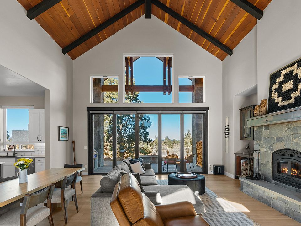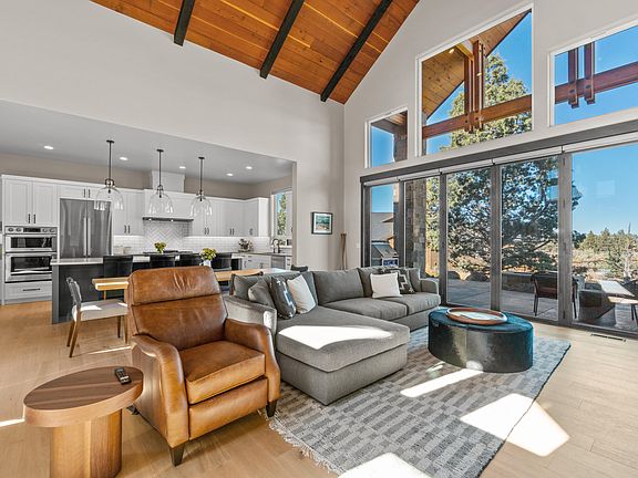 Stunning custom home in Brasada's Westside. This 2375 s/f home plus 716 s/f ADU separates itself from all the others being clad in solid reclaimed Redwood & with the wonderful Transitional Design. The home centers around a paramount view of Mt. Jefferson and pastoral views of the high desert, as well as the remarkable custom stone wood-burning fireplace. The great room has a soaring T&G ceiling and an abundance of large windows. Kitchen is complete with a huge center island and everything a chef could dream of. Lots of room to stretch out with friends and family with the main level 4 bedrooms / 2.5 baths & a gracious separate 1/1 apartment above the garage. Enjoy outdoor living year around on the covered patio. This home looks and feels brand new, has wonderful ADA compatibility, + a 1000 sf 3-car garage w/ EV charger. Create your own enduring Central Oregon sanctuary. From sunrise to sunset the beauty of this home and its surroundings will captivate your heart