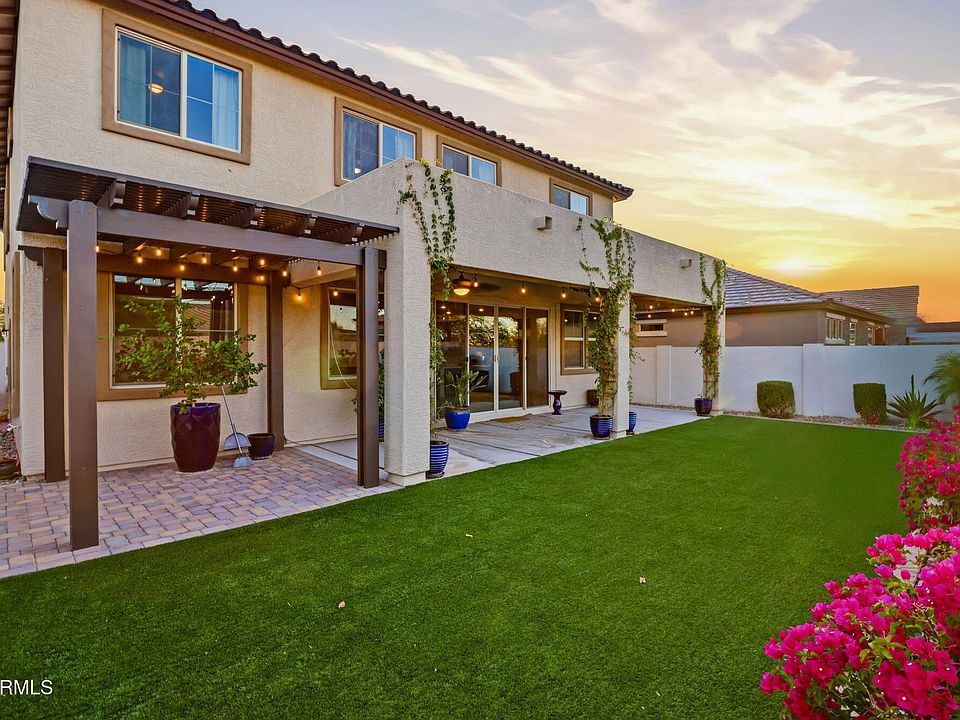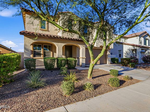 Beautifully upgraded home close to the lakes, yacht club & more. This spacious home offers 5 bed, 4 bath including a very desirable junior suite on the main level with private bath access. The interior features an expansive great room that seamlessly connects to the open kitchen, where you'll find upgraded granite slab countertops, abundant soft-close cabinetry, stainless-steel appliances, & R/O system. A 12-foot multi-panel slider opens to the inviting backyard, complete with an extended covered patio, low-maintenance turf & paver hardscape. Upstairs, 4 beds include a Jack and-Jill setup, along with a generous loft that provides flexible living space. Primary retreat offering 2 oversized walk-in closets with custom shelving & direct access to the laundry room. Enjoy mountain views! The oversized 3.5-car garage is a standout feature, boasting 8-foot doors, ceiling fans, an opener, and dedicated air conditioning excellent for a home gym, workshop, or climate-controlled storage. All of this is set within the award-winning Estrella community, where residents enjoy two resort-style recreation centers, lakes, golf, dining, hiking trails, and a vibrant desert-mountain lifestyle. This exceptional home brings together comfort, functionality, and location.
