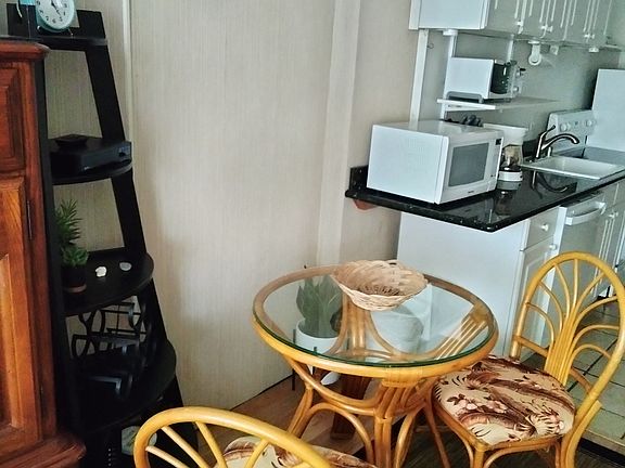 penthouse floor... furnished with updated appliances... emeral green granite counter top.,.exotic ceiling fan... balcony with a view of rainbows... close to everything...-5 minute walk to the beach.... view Friday night fireworks..