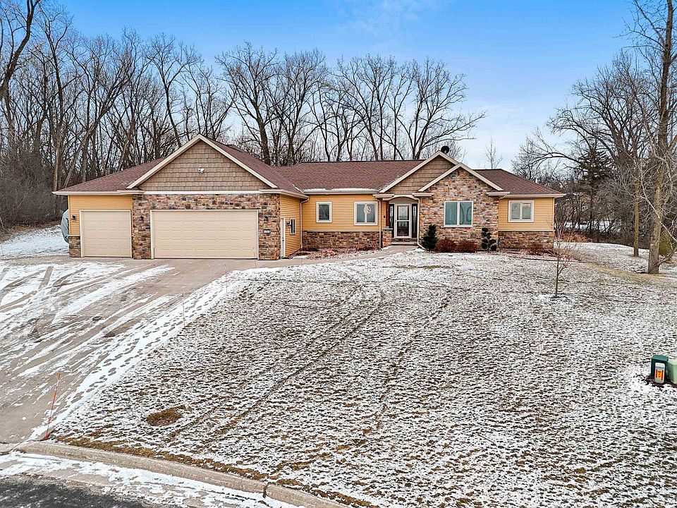 Gorgeous custom built 4 bd open concept 4 bath home w/2 FP & just under 3000 sf. This 7 yr old home is on a private .73 acre wooded lot at the end of a cul-de-sac. Updates in the past year include kitchen, counter tops, baths, landscaping, huge patio, fence, lighting, etc. High ceilings, maple woodwork, LR w/gas FP that opens to dining area & kitchen w/center island, great cabinet space & first FFL. Master en suite w/privacy screen patio porch & 2 additional bds on the main level. LL offers large rec area, wet bar, 4th bd, play rm, wood burning FP, egress windows and full bath with great storage. Fully finished 3+ stall heated garage with a back door. Submit offers with a deadline of on or before 2/5/25. Offer will be presented as they come in. Seller has the right to accept offer sooner.