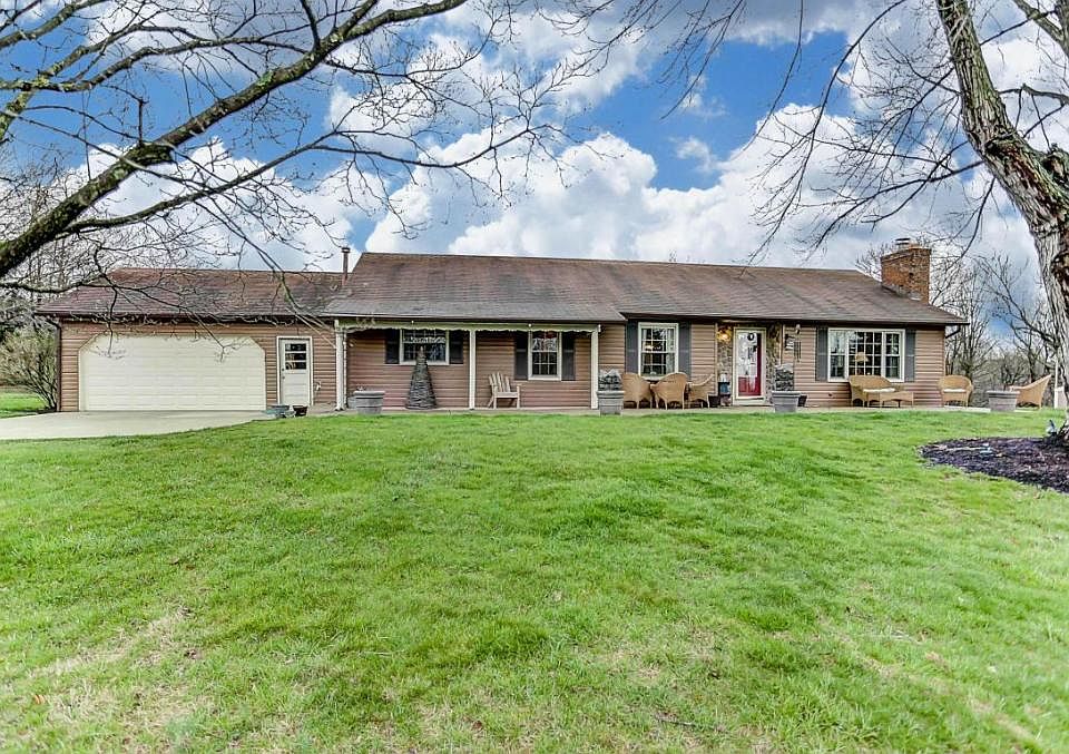 IMMACULATE ranch home, 3 bedroom 2.5 bath nestled on nearly 5 acres. Gorgeous wooded lot and partially fenced in yard. Giant deck featuring a gazebo and nice patio off the full finished walkout basement perfect for entertaining. Updates include: Water heater, water softener and refrigerator 1.5 years ago, new furnace less than 3 years ago, AC unit approx 7 years ago, new garage door (2015), seamless gutters (2014), concrete driveway (2012), new septic line (2015), new aerator for septic (2014), home completely foam insulated (2014), new stainless steel chimney liner (2016), interior doors (2011), basement was finished (2012). Close to freeway.